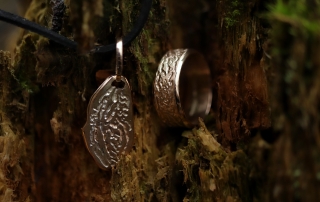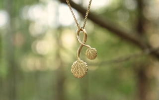 Toton koruhaave toteutui kierrättämällä vanhat korut. Kultaan ikuistettiin kaarnamuorin koukeroita ja vanhaa metsän viisautta.