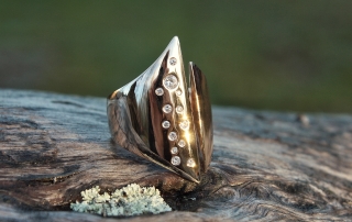 Rakastan sormuksen linjakkuutta, sen voimakasta olemusta. Erilleen jakautunutta runkoa, kuten elämässäni on käynyt.