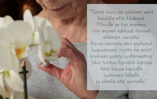 Haluamme säästää arvokkaan muiston äidistä, isästä, rakkaasta tädistä. Kultaisia koruja, joita pidämme korulippaassa. Katselemme niitä välillä, muistelemme ihmisiä niiden ympärillä, emmekä tiedä miten tai missä koruja itse käyttäisimme.