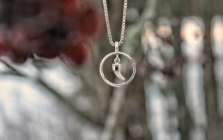 Pentuaika on äkkiä ohi. Pienestä karvapallerosta kehittyy komea koirakaveri. Hetan pentuhampaita säilytettiin muutama ja niistä kultaseppä valitsi parhaiten koruun sopivan. Hellyttävän pieni kulmahammas on kuin kaunis helmi hopeisessa kehyksessä. Kaulakorussa tämä hieno aarre pääsee kaikkien ihailtavaksi. Korussa säilyy omat rakkaat muistot Hetan pentuajoilta, siitä kun tämä suloinen kaveri tuotiin kotiin.